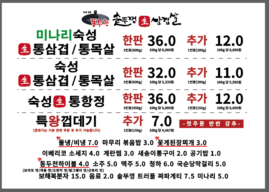 동두천솥뚜껑삼겹살 0 만원