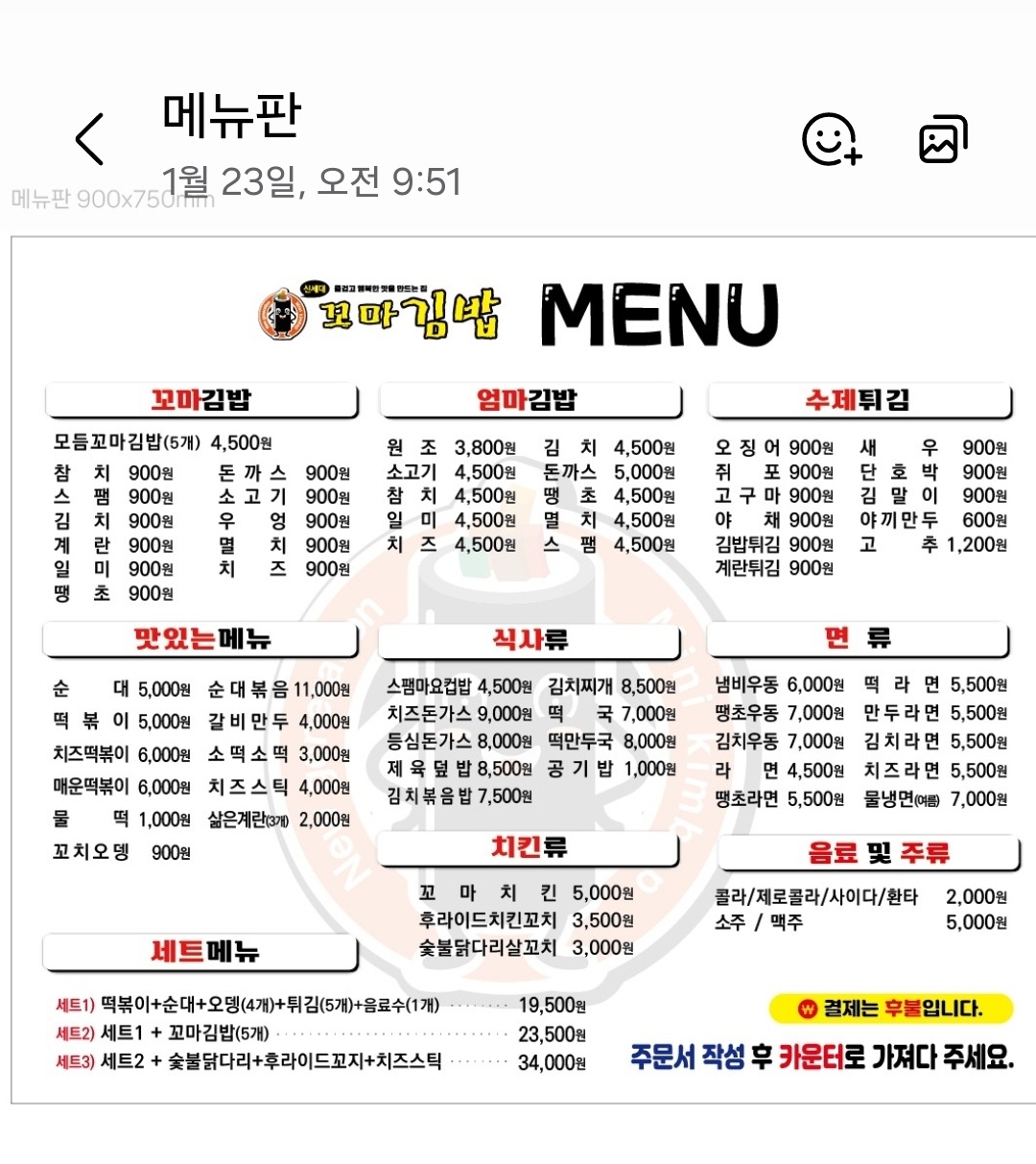 신세대꼬마김밥 0 만원