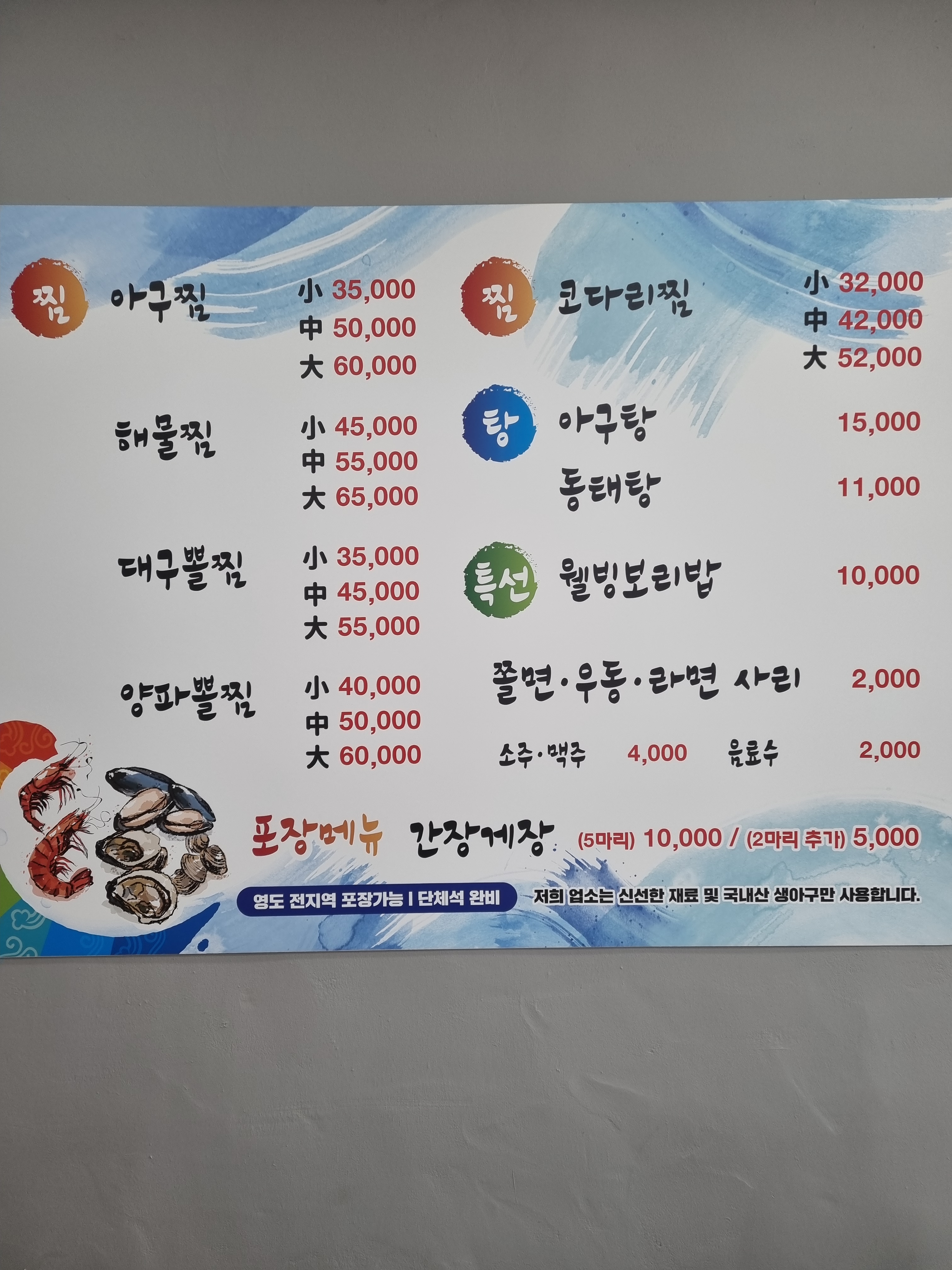 청해신푸른바다찜탕1,650 만원