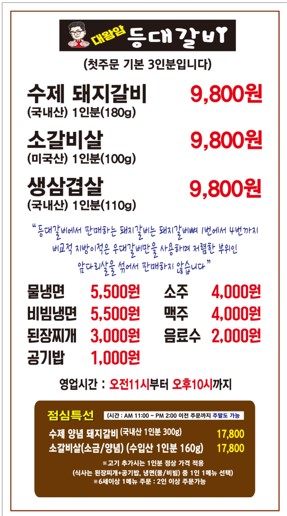 대왕암등대갈비 3,850 만원