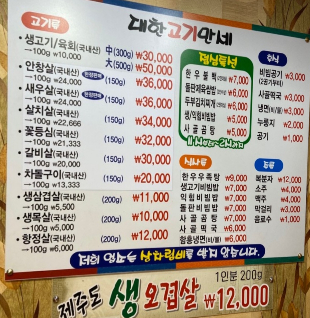 대한식당 5,000 만원