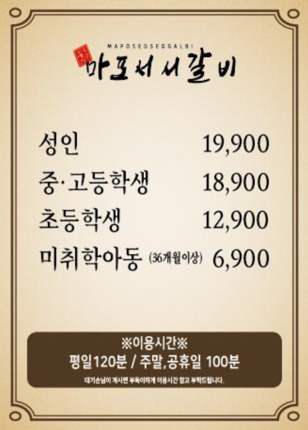 무한리필 마포서서갈비 19,860 만원