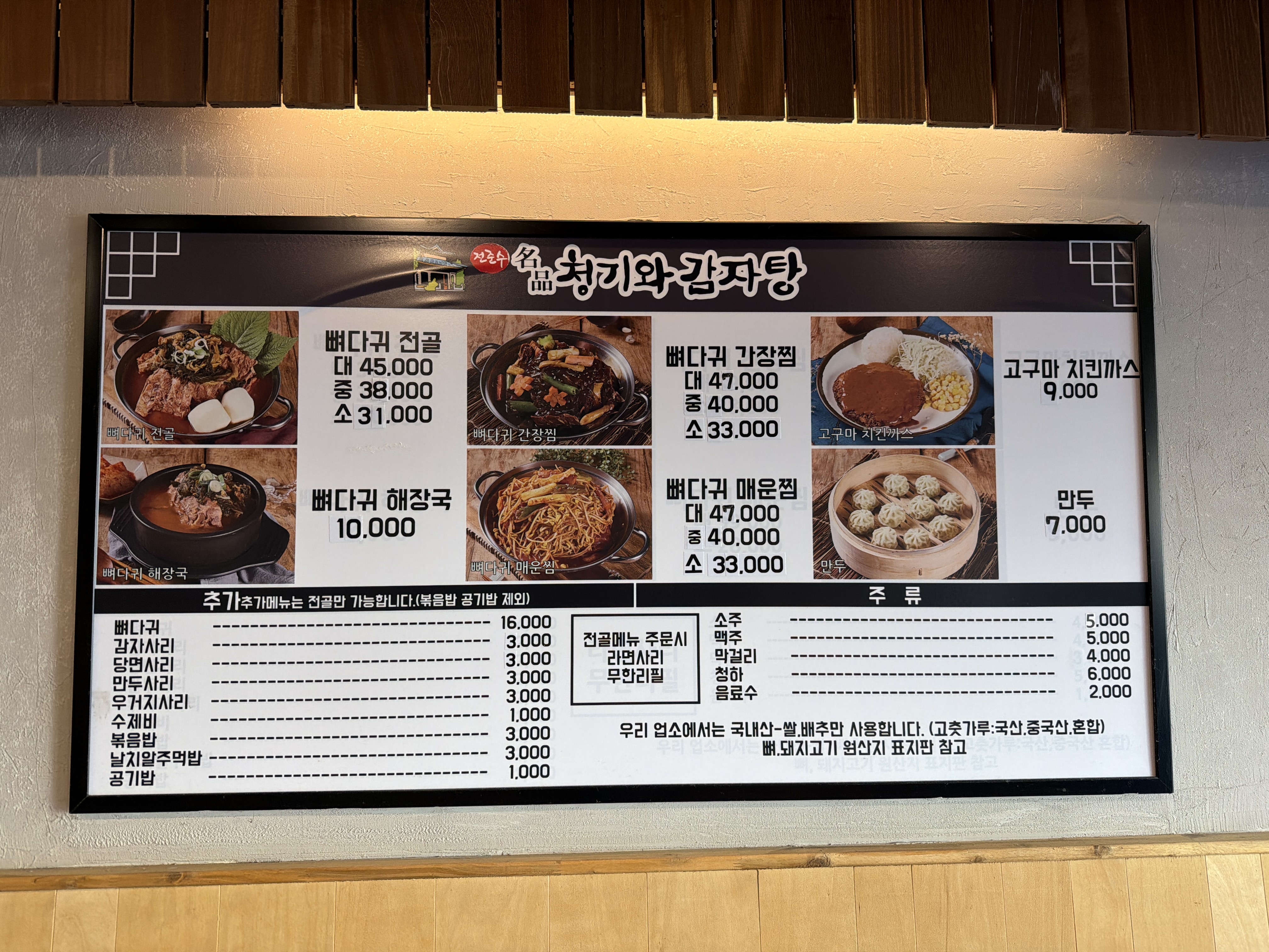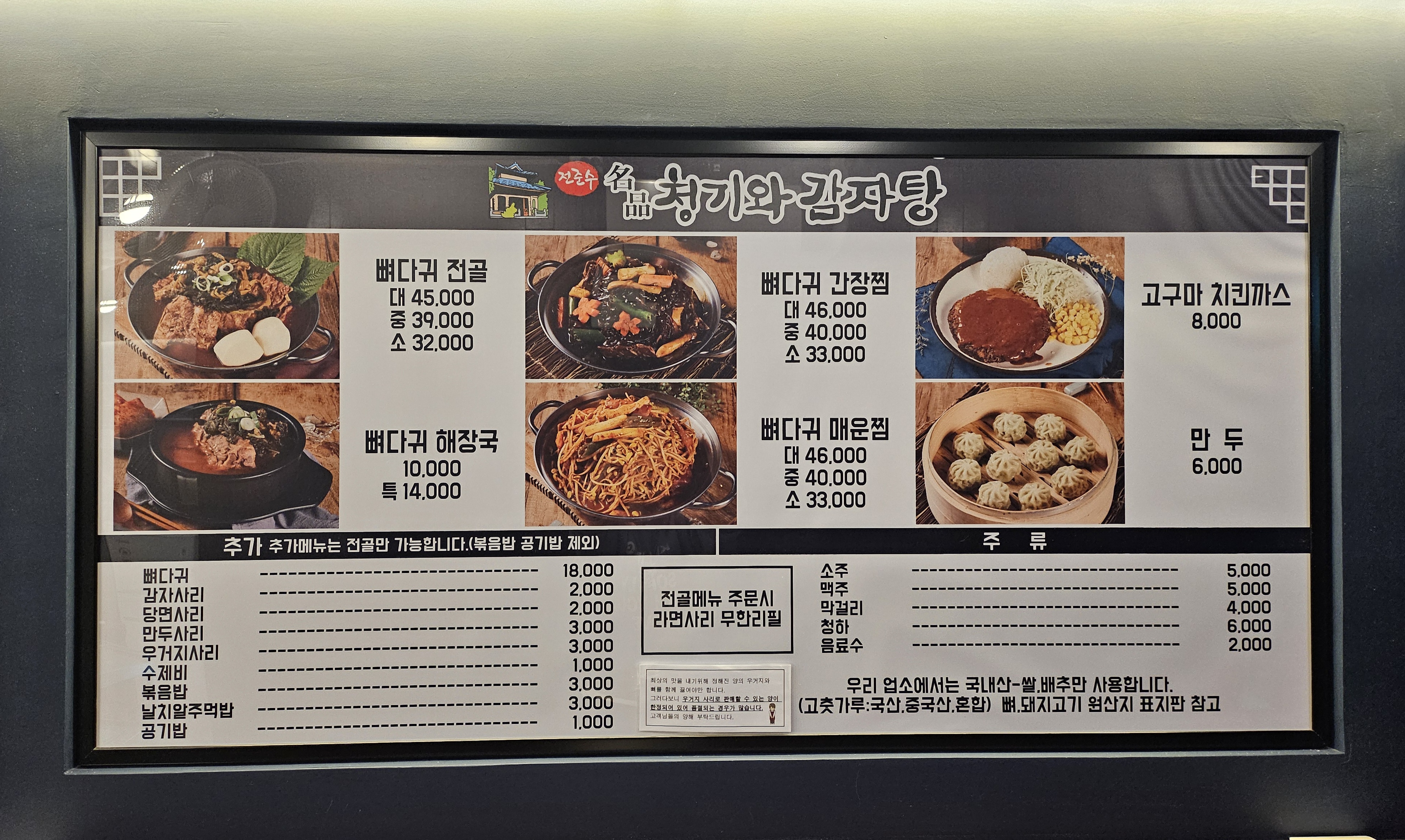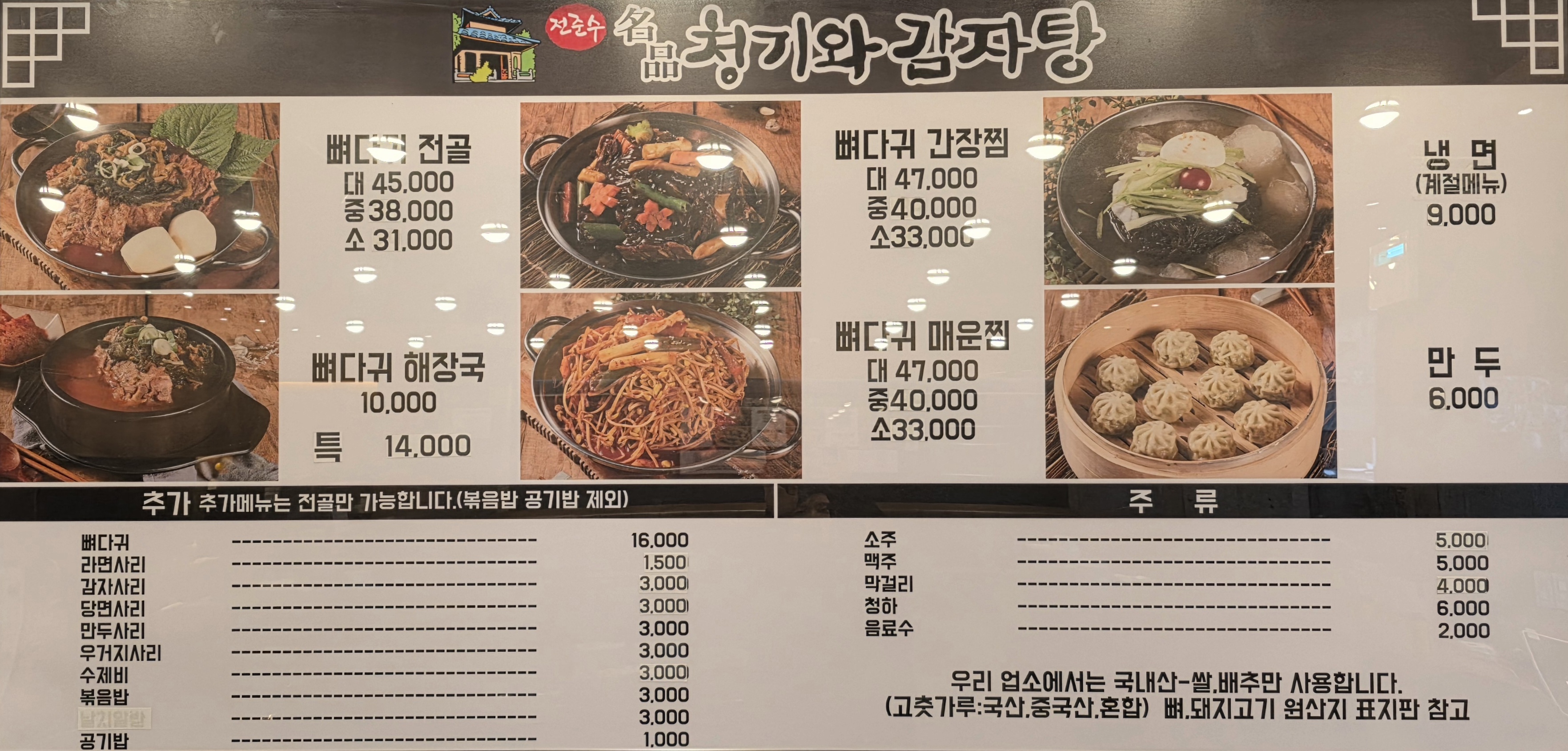 전준수명품청기와감자탕 8,800 만원
