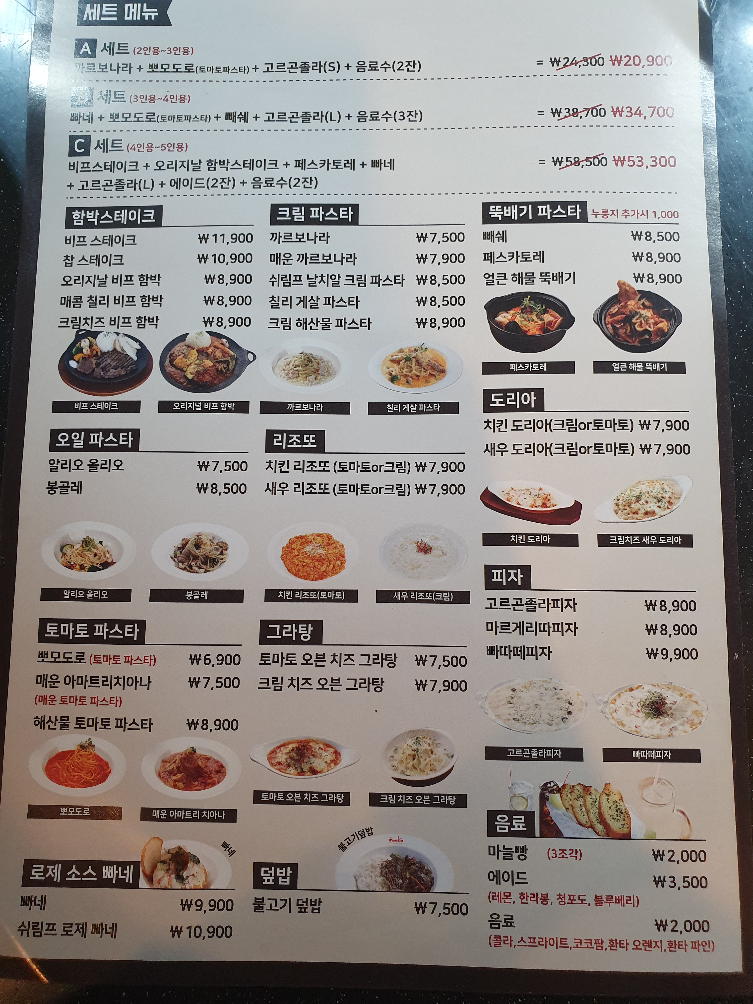 돈카냉면&파스타 3,300 만원