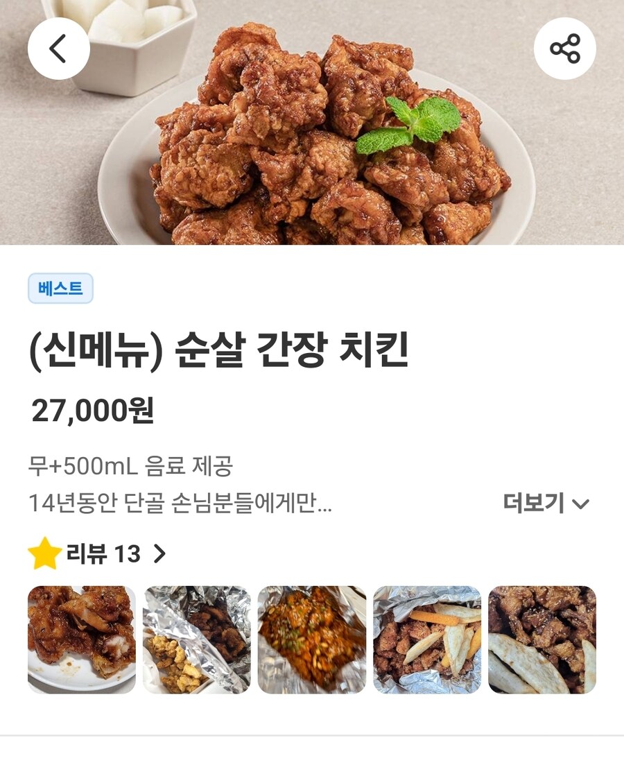 수준이 다른 치킨 7,980 만원