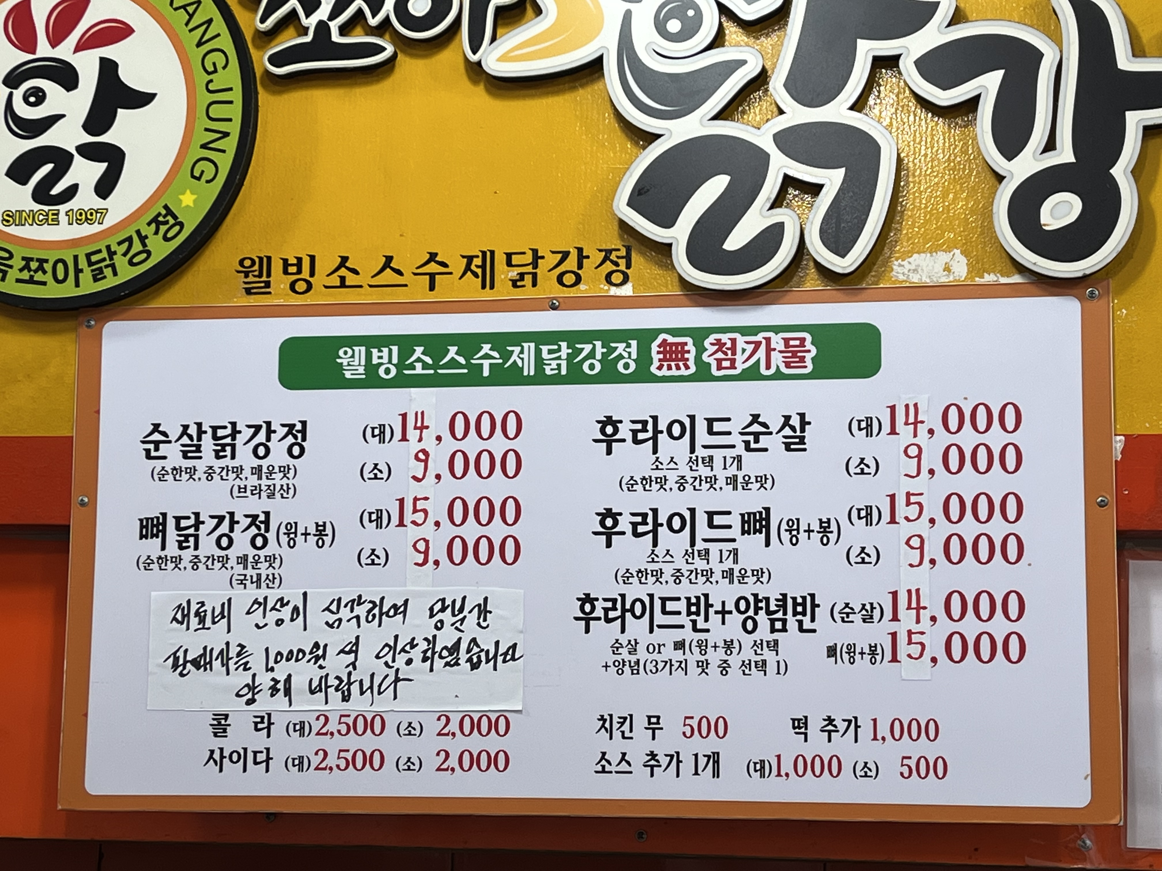 영업표지: 쭈쭈닭강정
