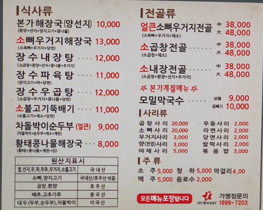 장수본가해장국 3,080 만원