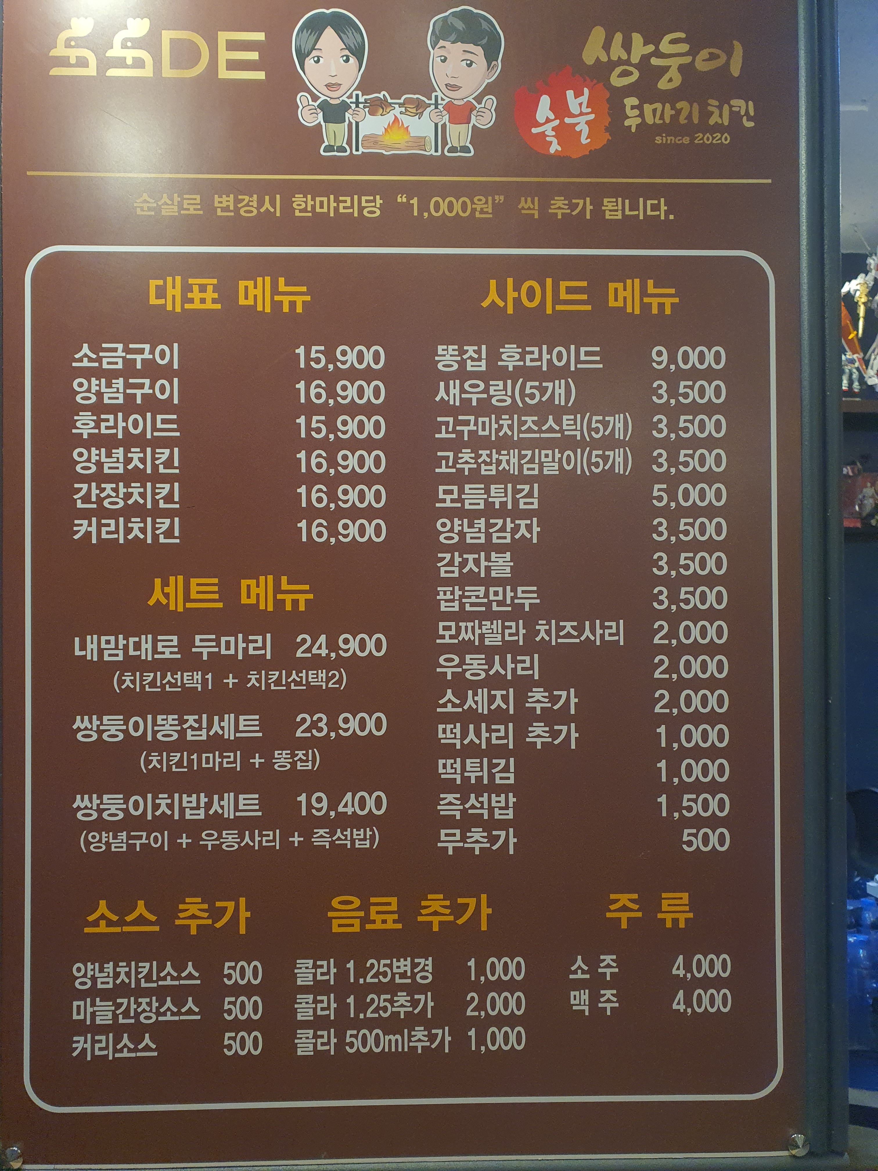 쌍둥이숯불두마리치킨 1,100 만원