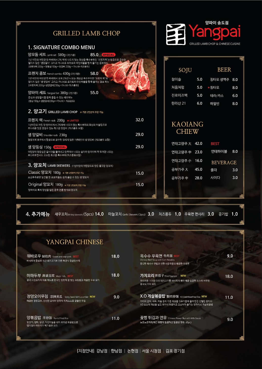 부드럽고 신선한 양갈비와 양꼬치를 즐길 수 있는 정통 Chinese Cuisine