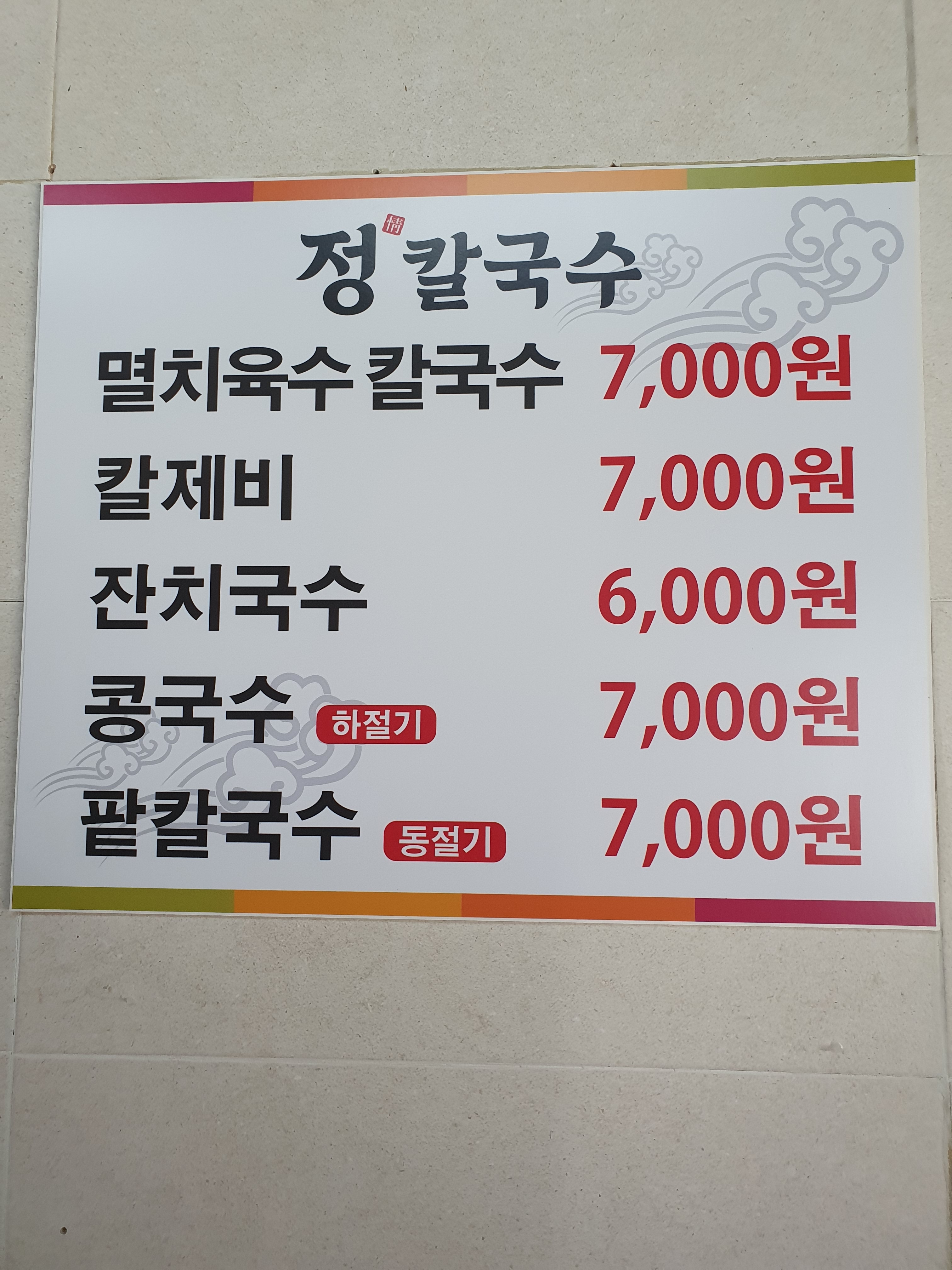정칼국수 0 만원