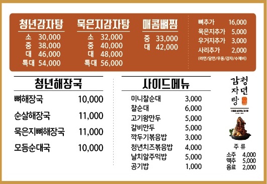 청년감자탕 순대국 38,026 만원