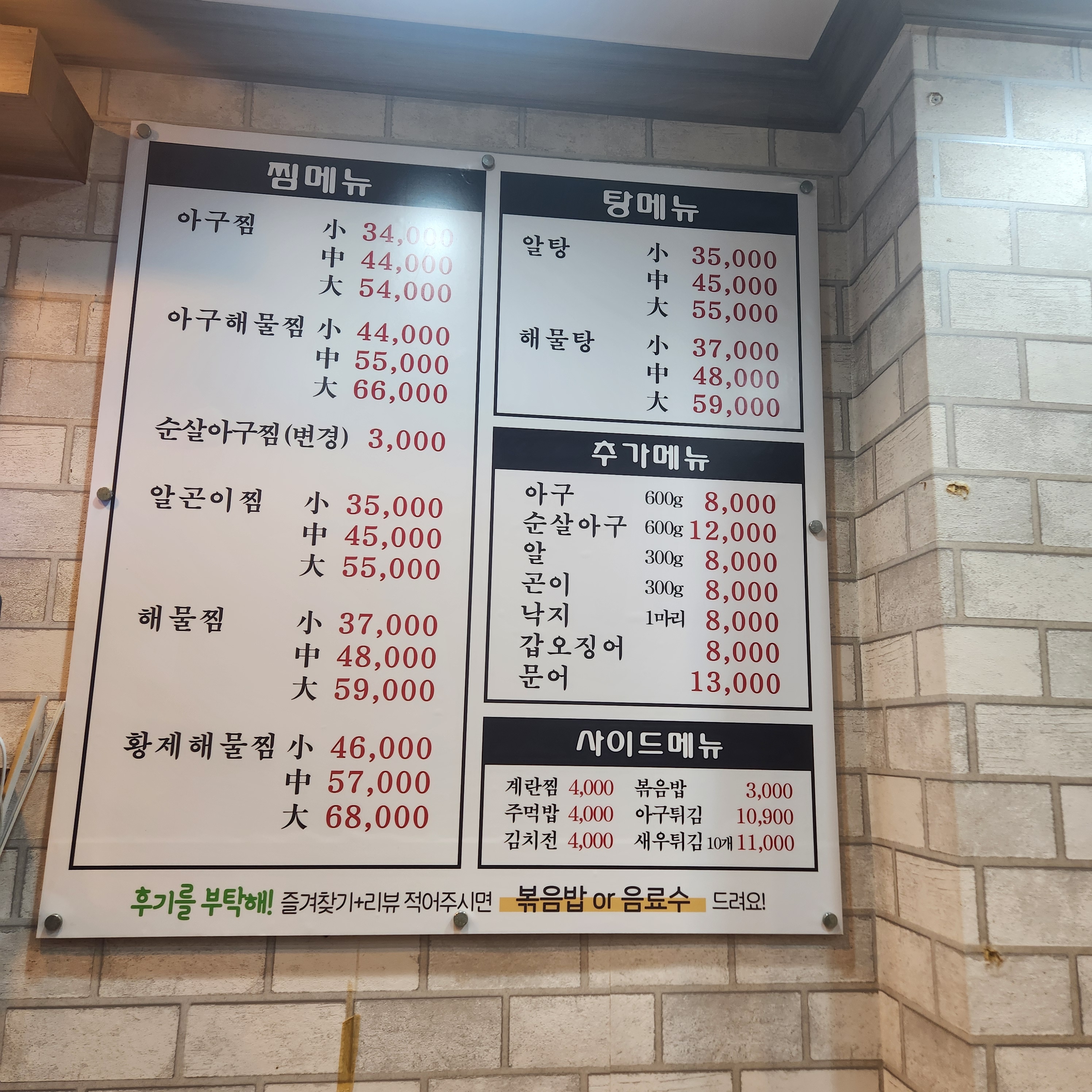 청춘아구찜알곤이찜 540 만원