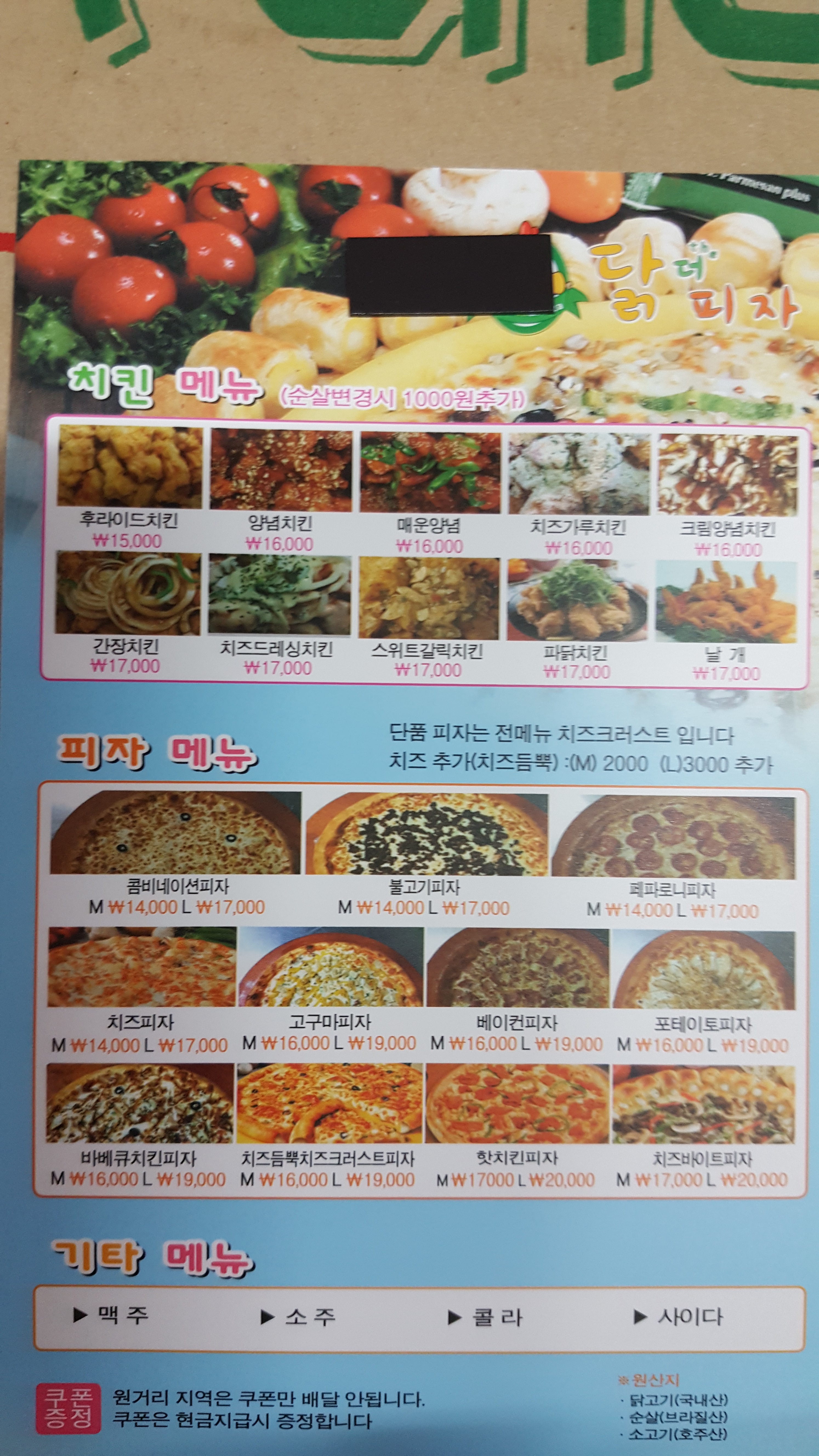 피자에 꼬친 닭 0 만원