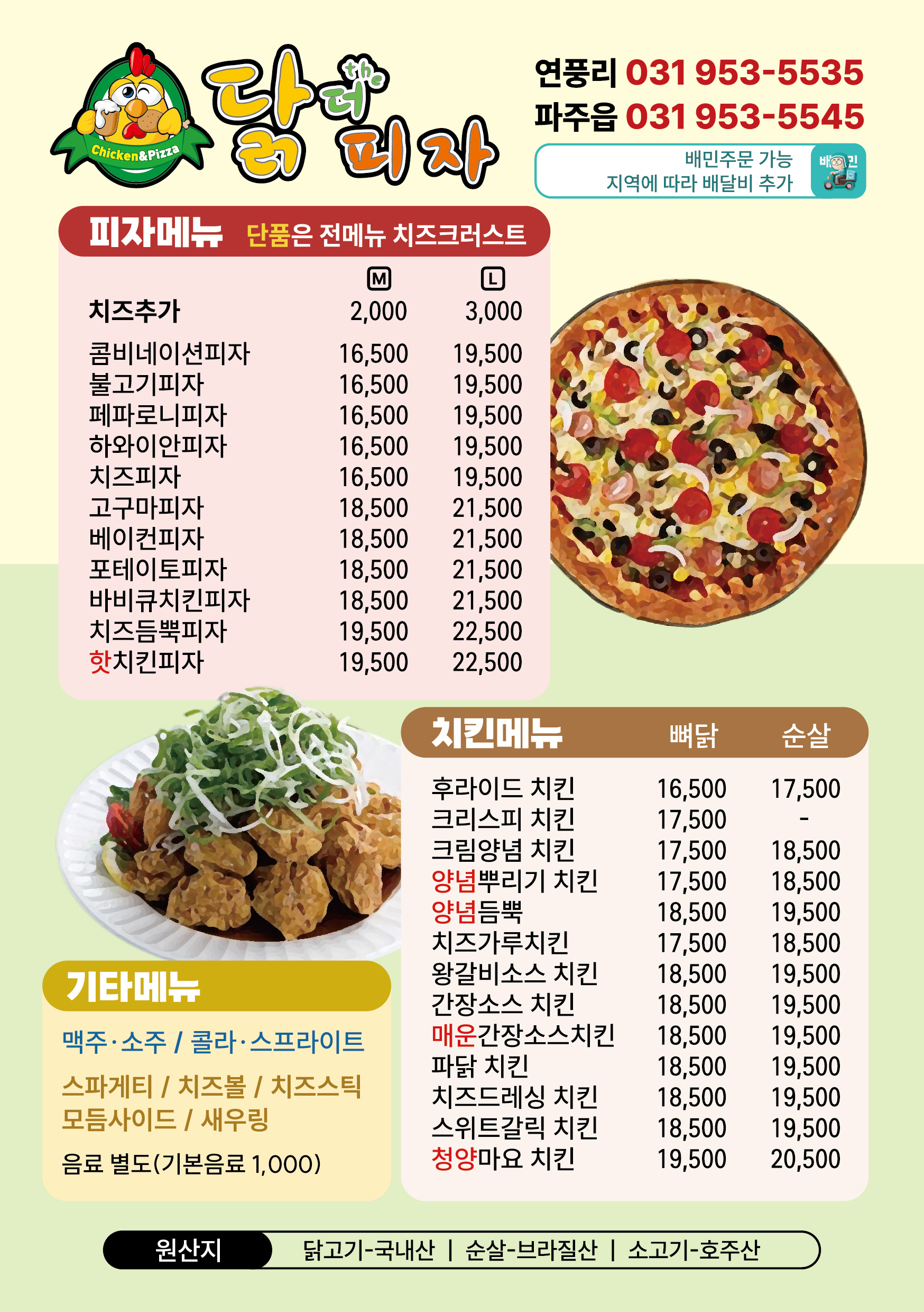 피자에 꼬친 닭 1,430 만원