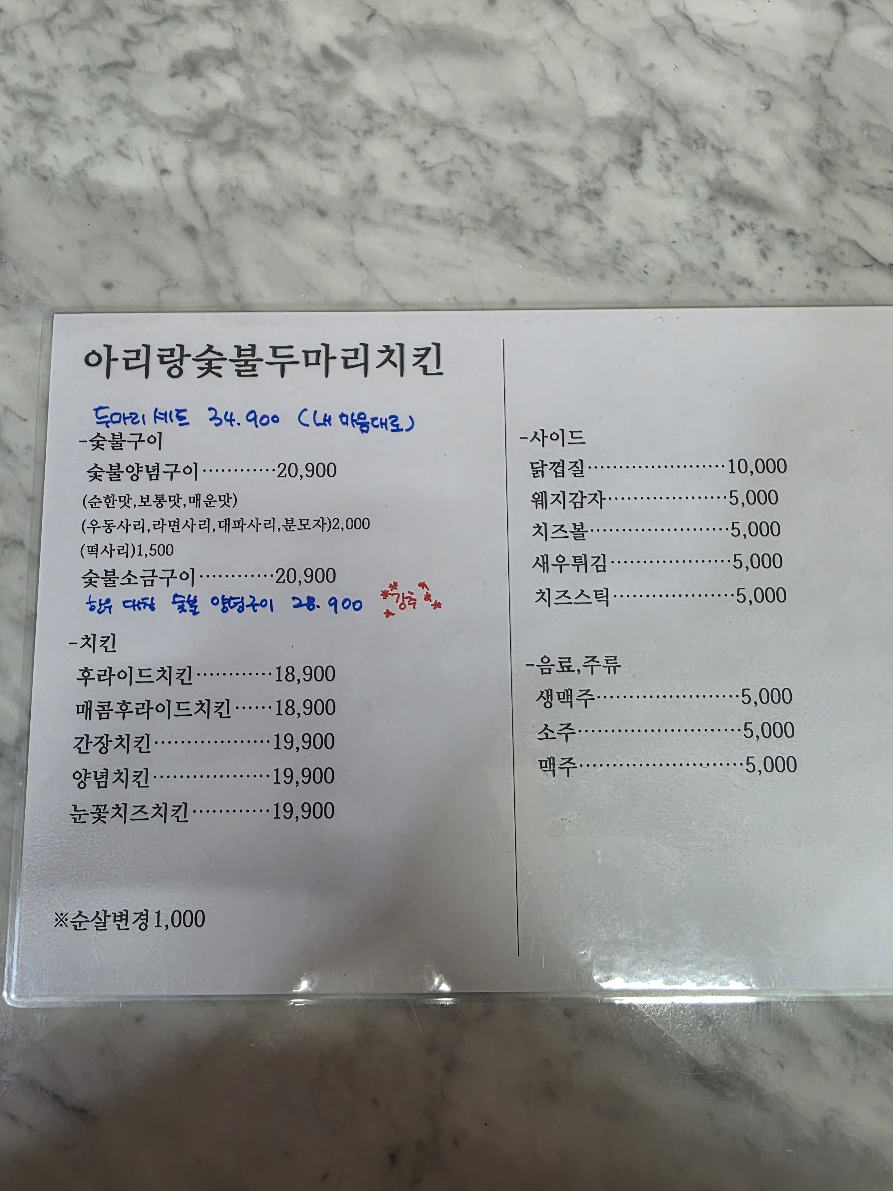 송송숯불두마리치킨 0 만원