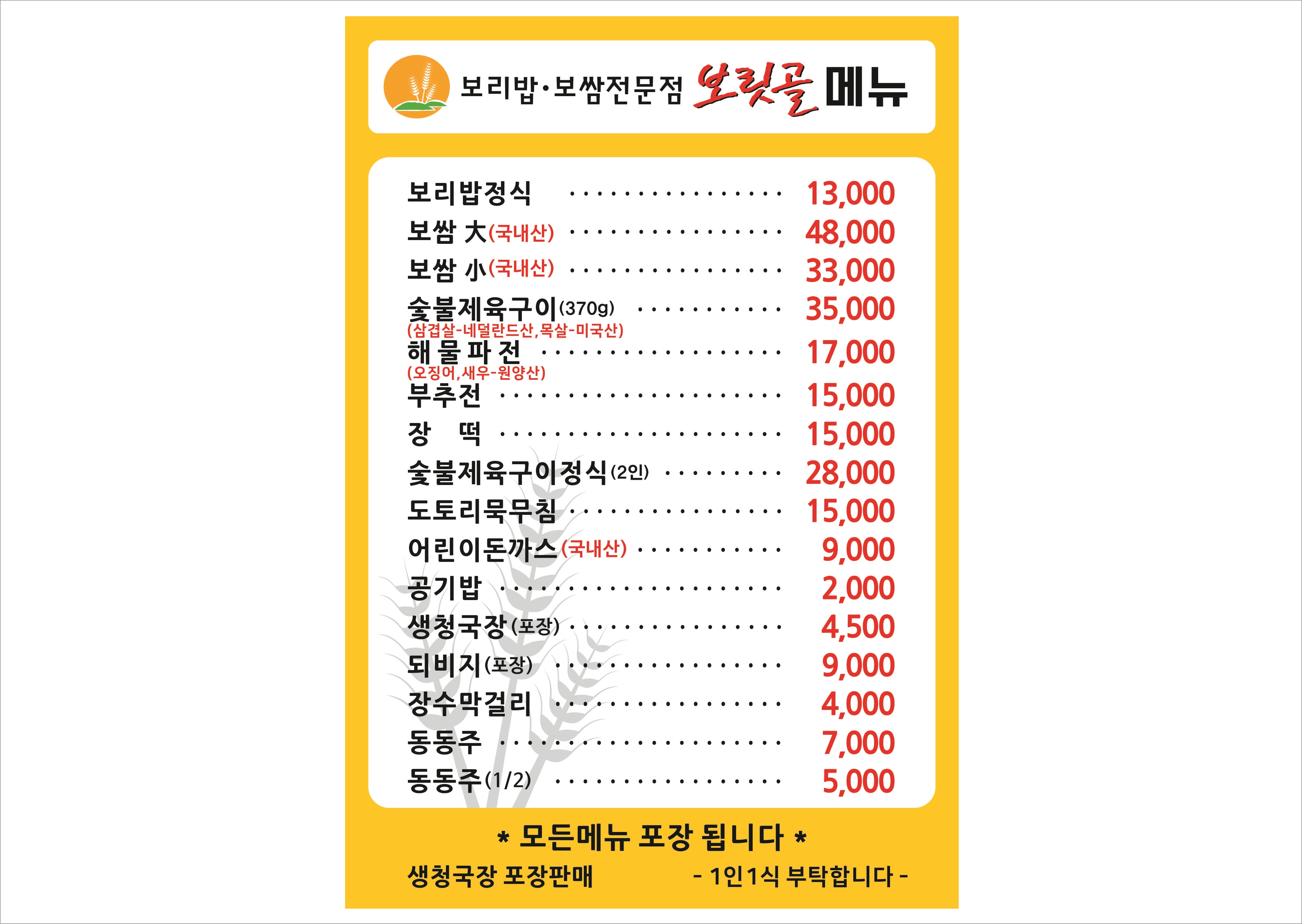 보리밥보쌈전문점보릿골 0 만원