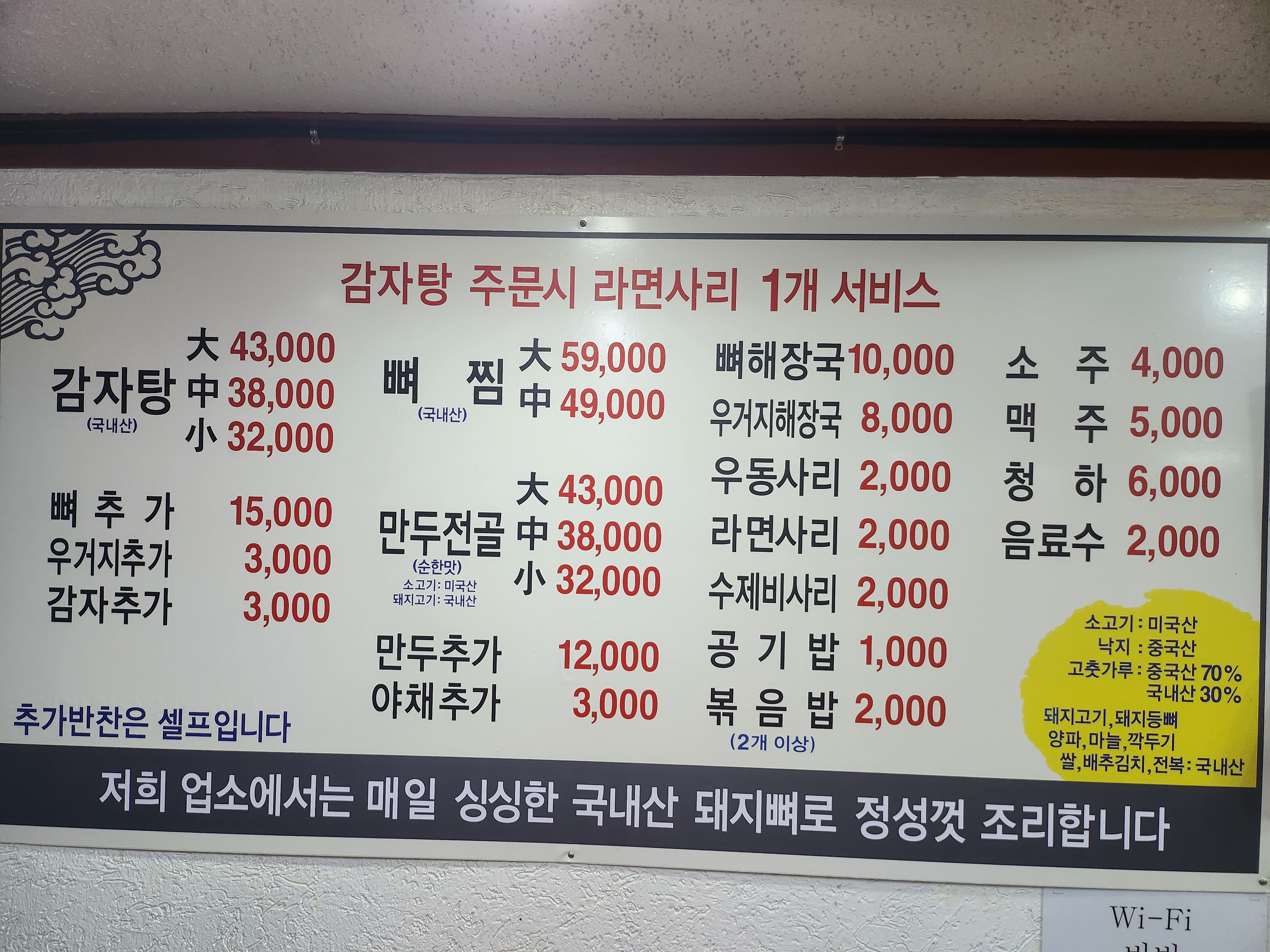 봉순이네 한상차림 3,300 만원