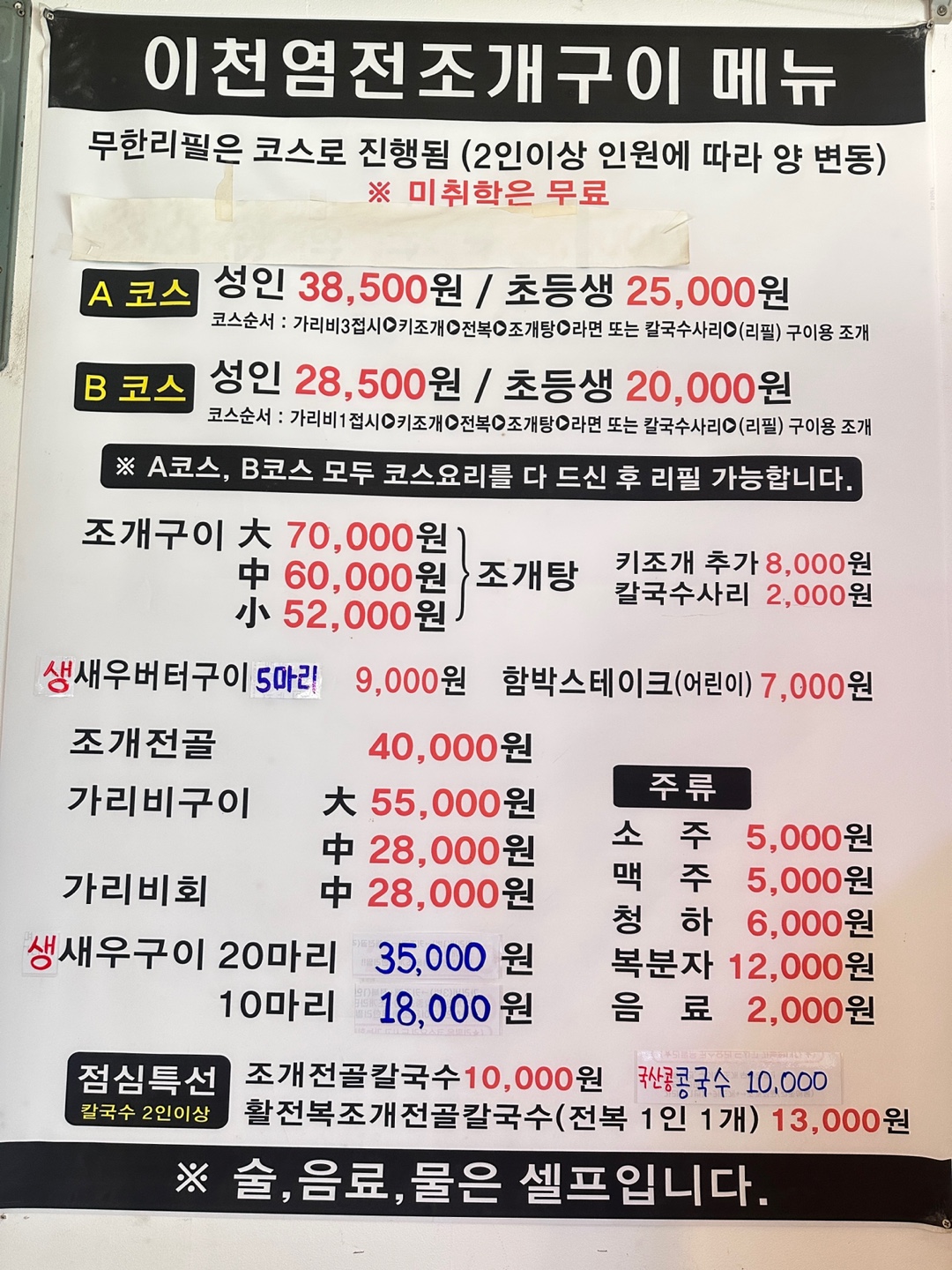 이천억 조개구이와 고기 0 만원