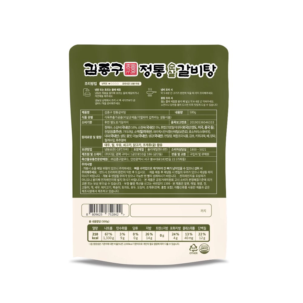 김종구참갈비탕찜 1,100 만원