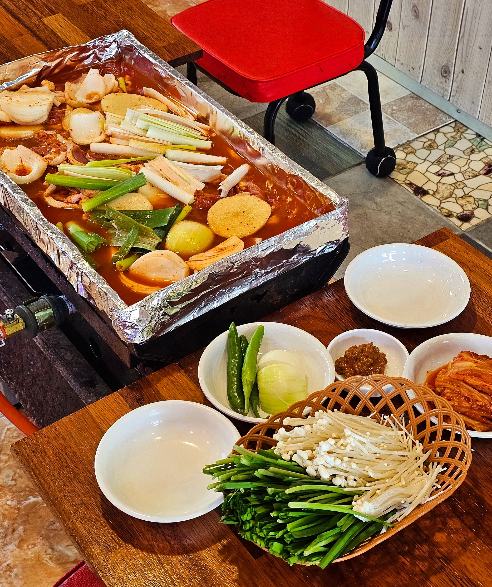 깔끔하게 세팅해놓고 오기만을 오매불망 기다렷어요 이곡동맛집 닭도리탕 인생도리탕 나오기만을 경건한 맘으로 기다렸답니다 짠~ 드뎌 나왔어요 다 익혀서 나오니깐 그냥 먹으면 된답니다 중 사이즈예요!!! 힝...   blog.naver.com/silly0904